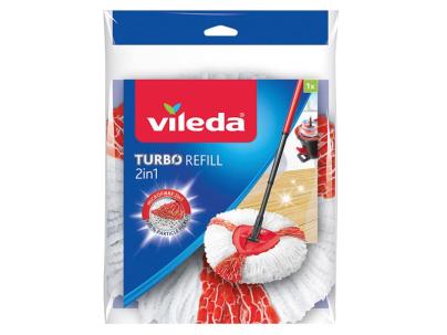 The Vileda Turbo 2-in-1 Mop Refill can be used with all Vileda Turbo Mop systems. Highly absorbent microfibre strands and red power zones allow for 20% more particle pickup than standard microfibre. Removes over 99% of bacteria with just water* – no chemicals needed.
