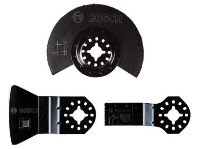 The 3 Piece Bosch Basic Tile Set for essential tile and bathroom applications. The Starlock mount provides optimum power transfer and convenient blade change within 3 seconds. The mounting system produces the highest power transfer due to a 3-dimensional tight-fitting connection between machine and accessory.
