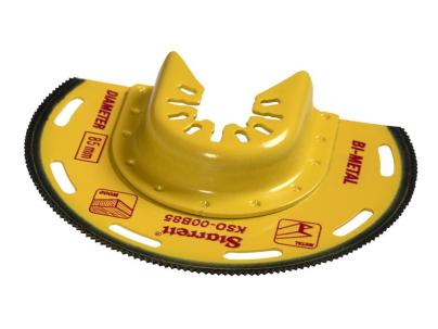 £10.60 inc VAT Starrett KSO-00B85 Semi-Circle Bi-Metal Oscillating Blade. The curved edge allows for long, straight cuts with better control. Ideal for flush cutting against surfaces, trimming door jambs, or cutting flooring around obstacles. Provides a larger cutting surface compared to narrow plunge blades, improving efficiency. Fits most popular brands of multi-tool machines. NOT compatible with Starlock.Perfect for:- Cutting drywall openings for electrical boxes- Trimming flooring or panels flush to walls- Cutting through wood with embedded nails during demolition- Making long, straight cuts in sheet materials- Ideal for rounded surfaces such as furniture, columns, drywall, and plasterSpecifications:Diameter: 85mm Add to Basket Quantity