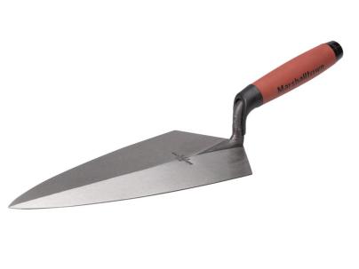 £68.33 inc VAT The Marshalltown Philadelphia Pattern Low Lift Brick Trowel features a specially designed 102° handle angle, which is ideal for masons who are accustomed to a lower lift. This unique angle ensures comfort on the job while reducing wrist and hand pain. Constructed from a single piece of high carbon steel and heat treated for optimal durability and strength. The blade is then taper ground and polished to add flexibility, allowing masons to easily scoop and apply mortar on the jobsite. Fitted with a DuraSoft® handle and a bumper for protection from impact. Add to Basket Quantity